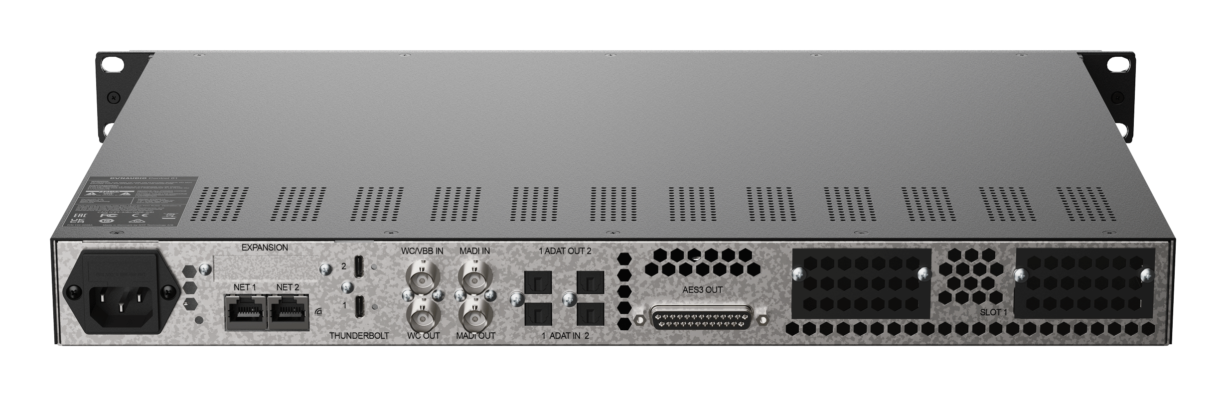 Dzięki dołączonemu interfejsowi Dante, złączom MADI, wyjściom AES3 i Thunderbolt można od razu przesyłać dźwięk pomiędzy czterema różnymi formatami. Przy użyciu DADlink i podłączonych interfejsów możliwy staje się routing pomiędzy imponującą liczbą 984 możliwych kanałów. Control 01 posiada gniazdo DADlink i dwa gniazda rozszerzeń, w których można umieścić dowolne dostępne opcje rozszerzeń DAD – w tym ośmiokanałowy przetwornik AD, wiodącymi w branży przedwzmacniaczami mikrofonowymi o nieskazitelnej czystości dźwięku, ośmiokanałowy przetwornik DA i dodatkowe 256 kanałów Dante z SRC, podwójny interfejs MADI, AES3 i dwie karty SDI.